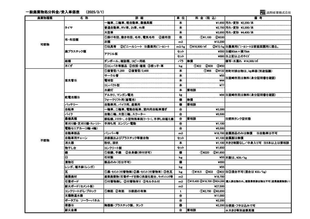 一般廃棄物処分料金