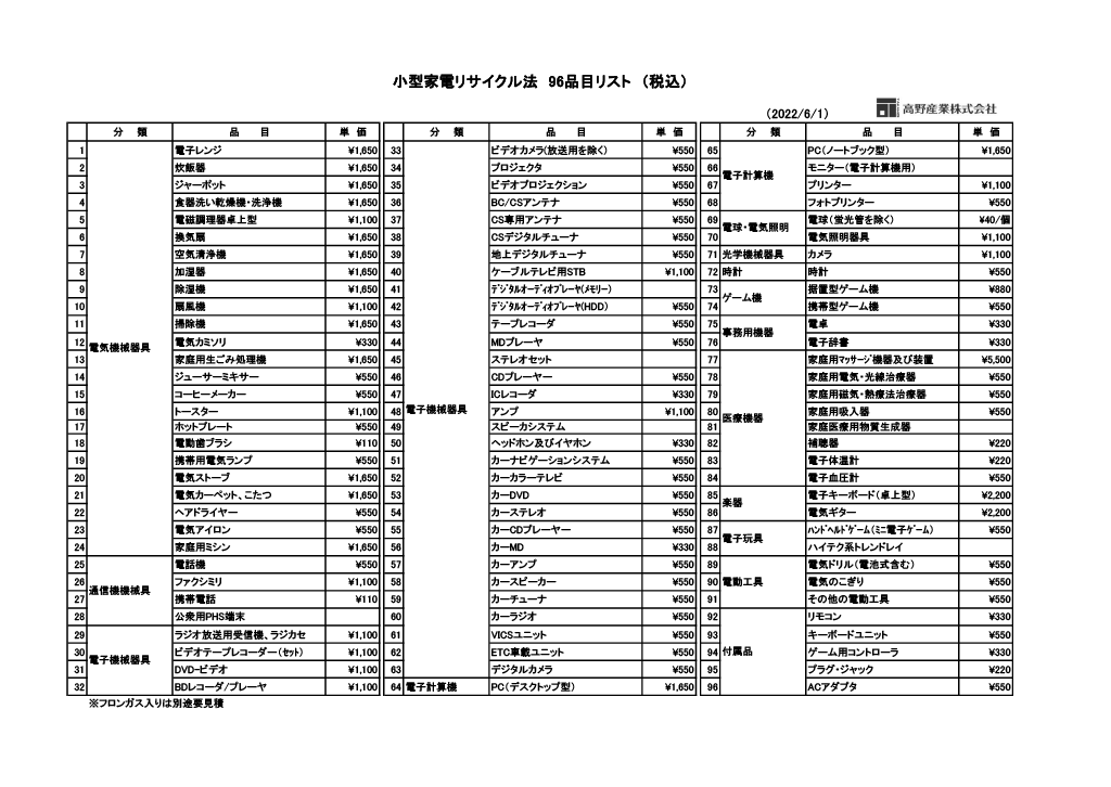 小型家電リサイクル96品目